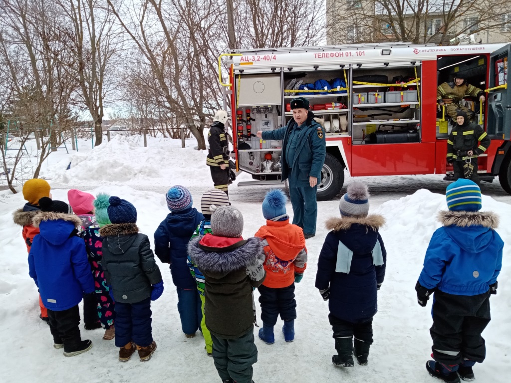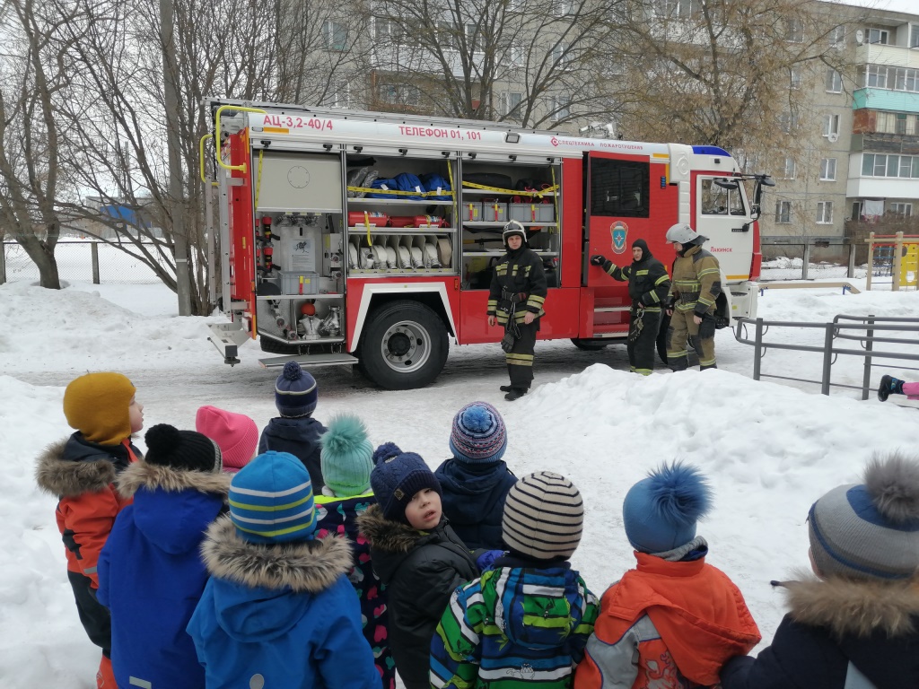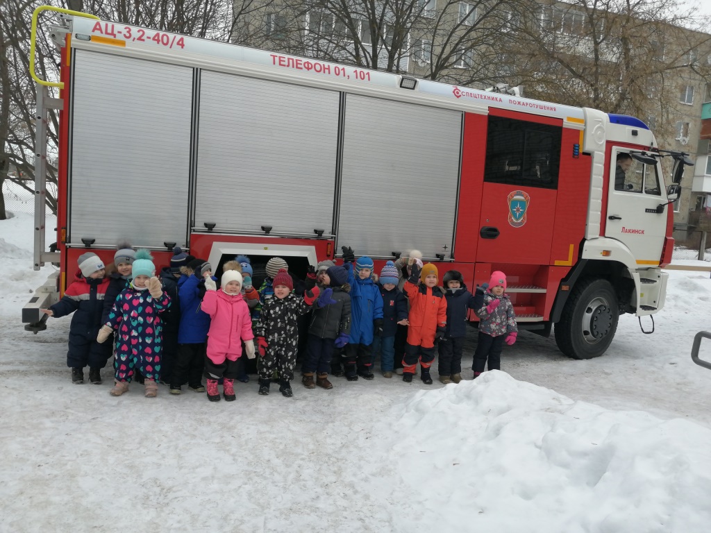 А также в гости к нашим воспитанникам приехали пожарные из Лакинской пожарно-спасательной части №32. Познакомили ребят с новой пожарной машиной, рассказали о работе пожарных и напомнили правила пожарной безопасности.
