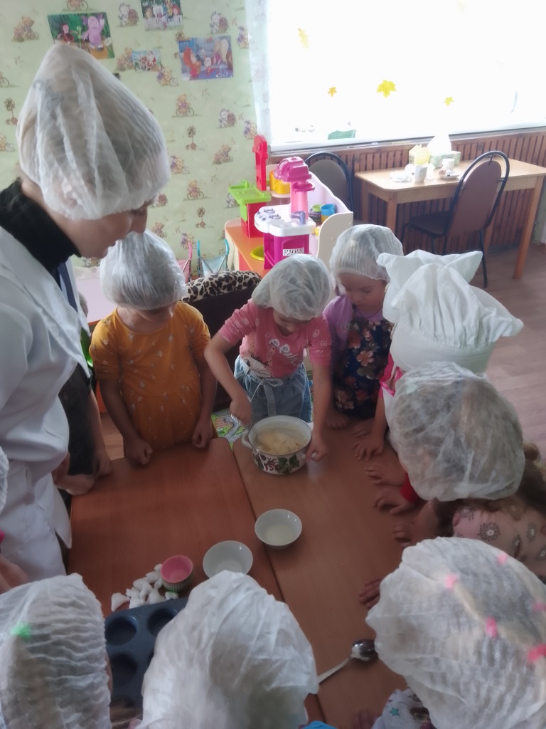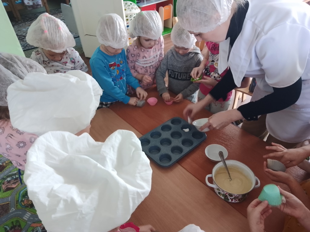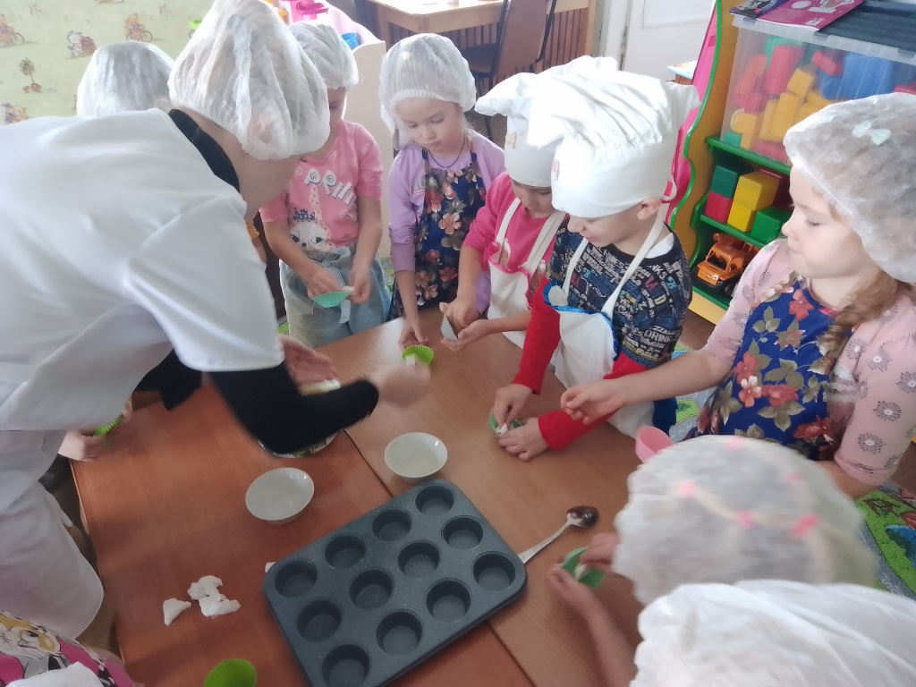 В этот день ребята познакомились с профессией повара, совершили экскурсию на кухню, получили азы поварского мастерства. А воспитанники подготовительной группы «Пчелки» вместе с воспитателем Поздняковой Н.Н. сами побывали в роли повара - приготовили вкусные кексы под чутким руководством наших поваров!