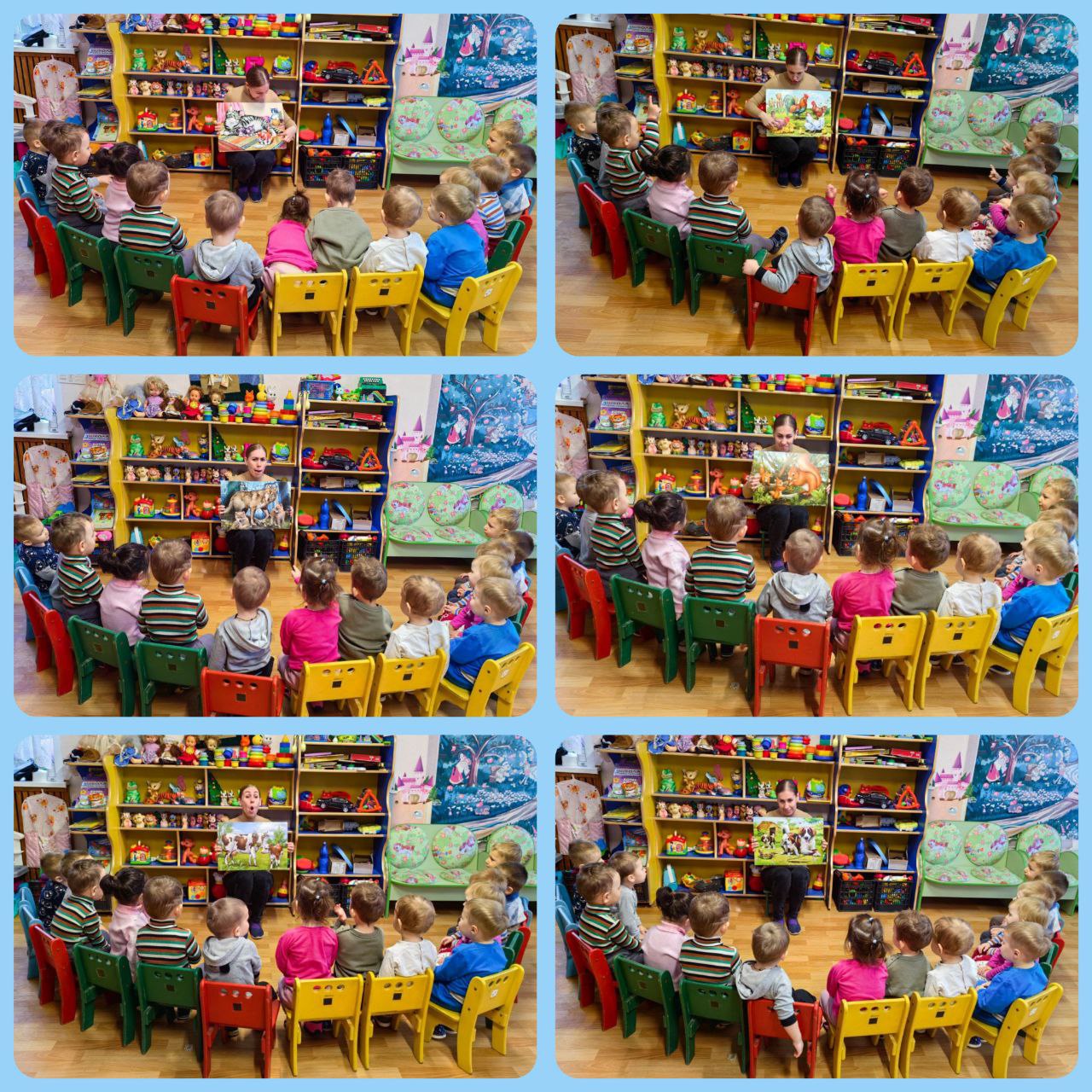 Дети рассматривали иллюстрации, отметили, что на них изображены животные. Читали рассказы из книги для самых маленьких «На нашем дворе», повторили названия домашних животных и их детёнышей.