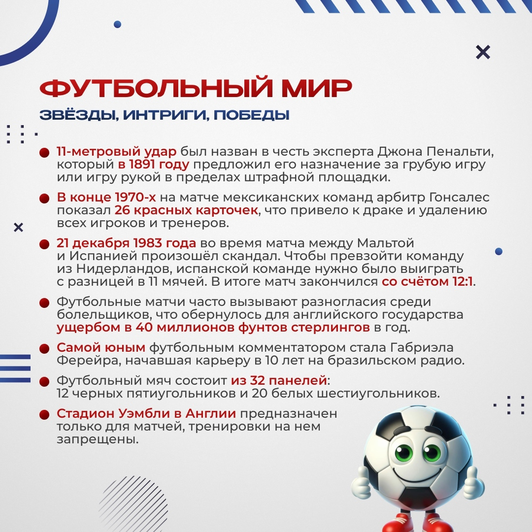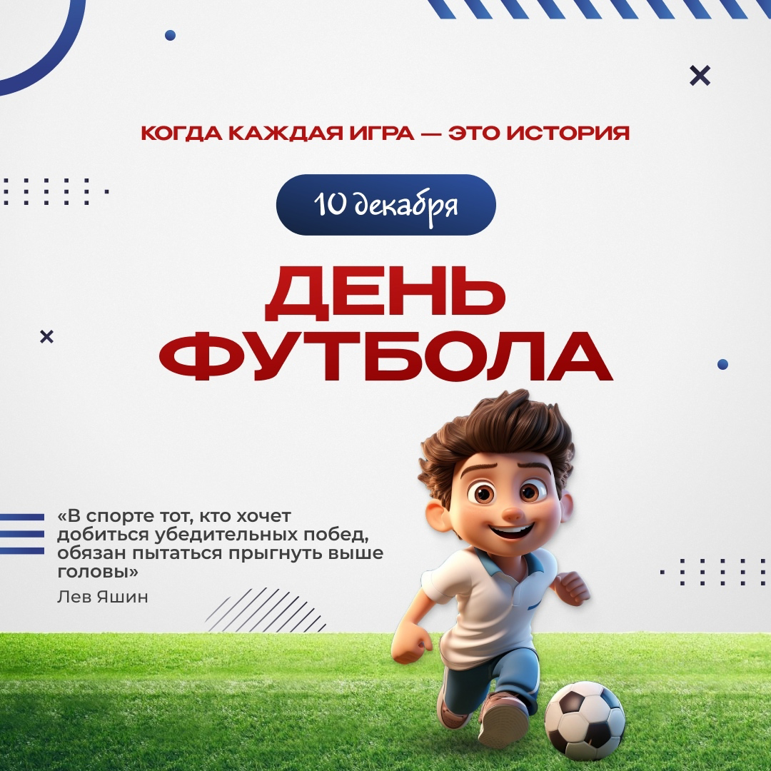 Сегодня, 10 декабря, весь мир отмечает Всемирный день футбола — праздник, объединяющий миллионы людей по всему земному шару. Этот день посвящен самой популярной игре, которая вдохновляет, воспитывает командный дух и учит нас стремлению к победам.