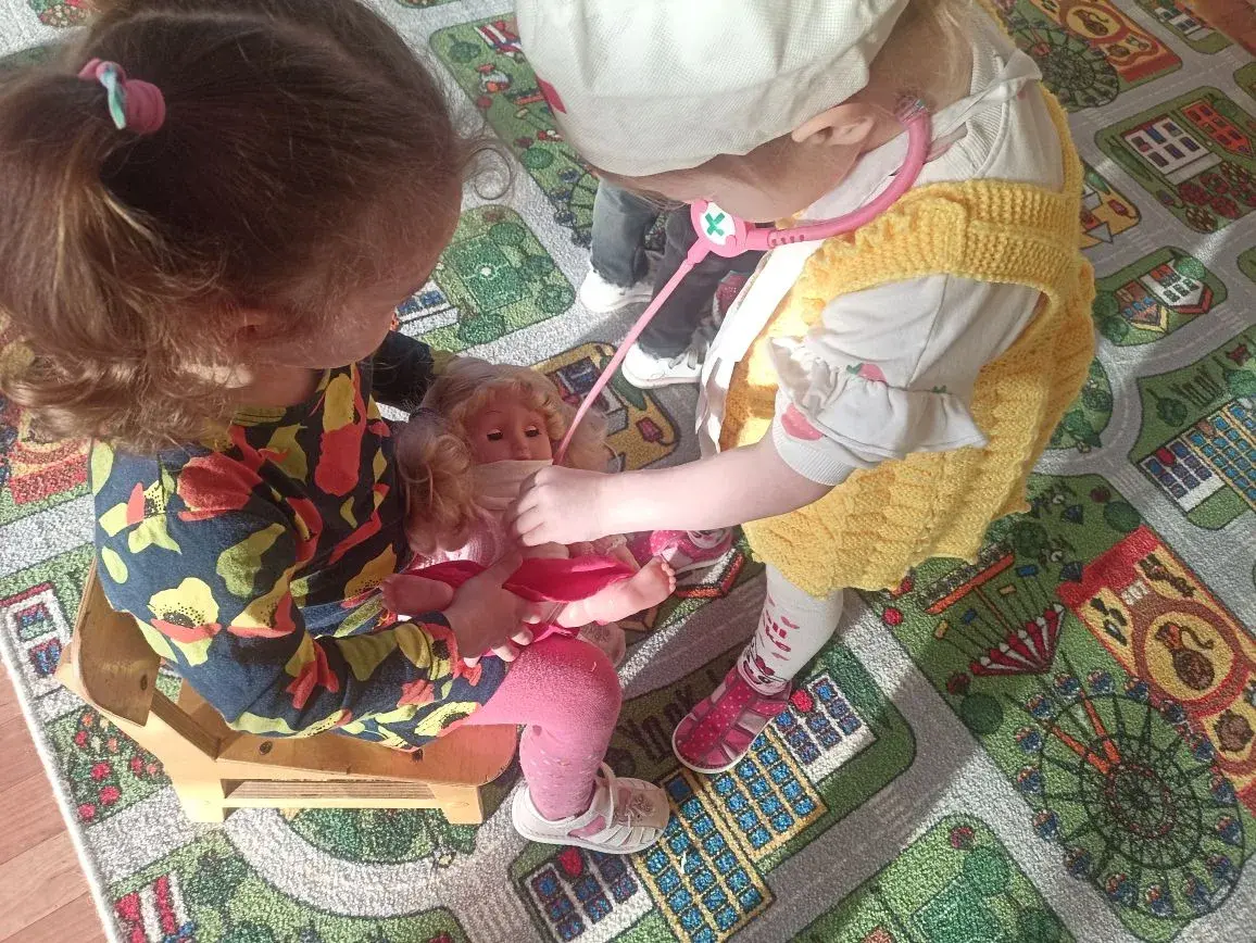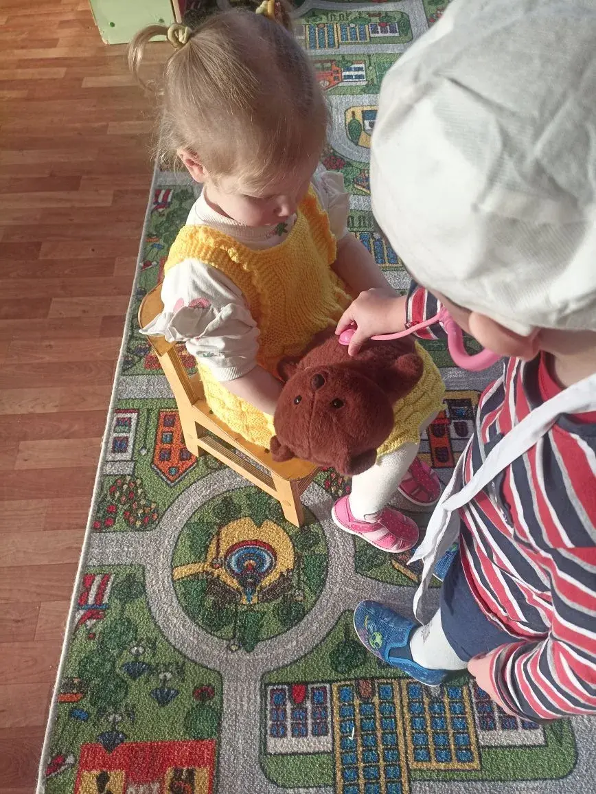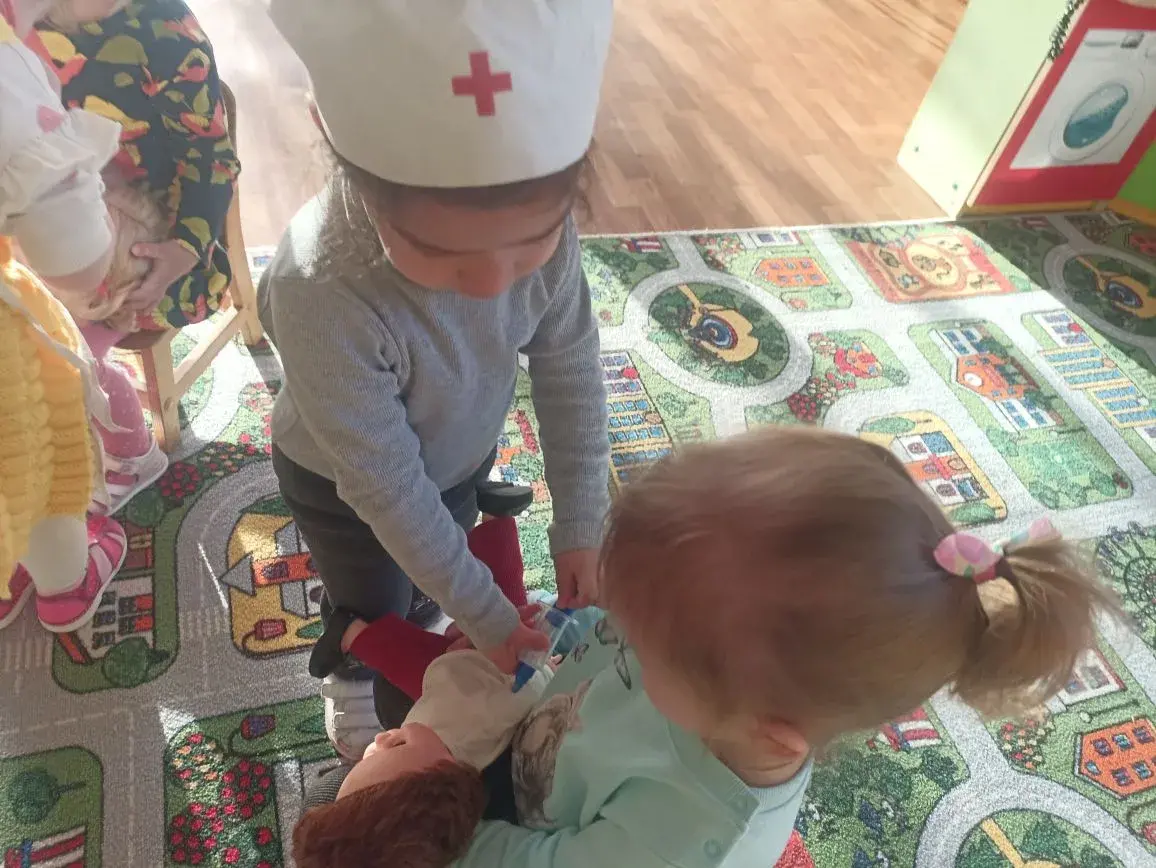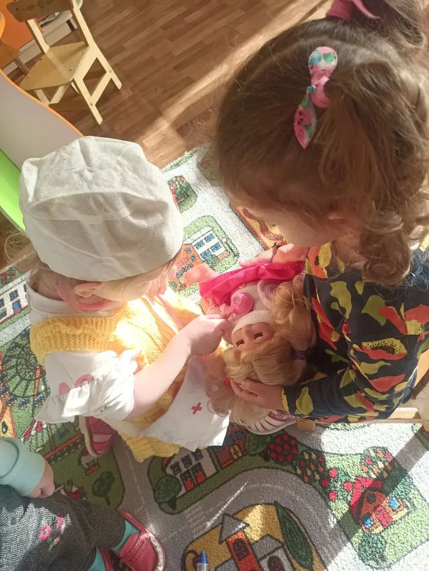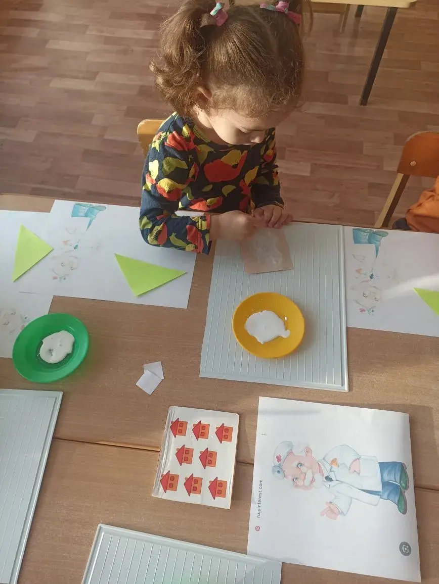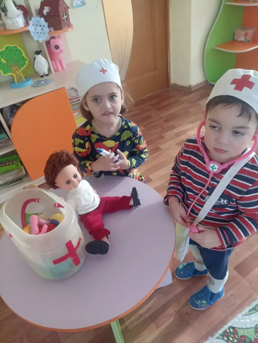 Сегодня воспитанники группы «Ромашка» знакомились с профессией врача,играли в сюжетно- ролевые игры,делали аппликацию из геометрических фигур «Детская больница»