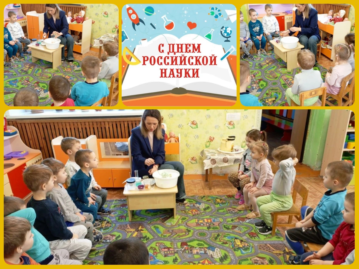 В группе «Радуга» прошел необычный праздник — День науки! Воспитатель Алена Сергеевна подготовила увлекательную программу познавательных опытов специально для наших маленьких исследователей.