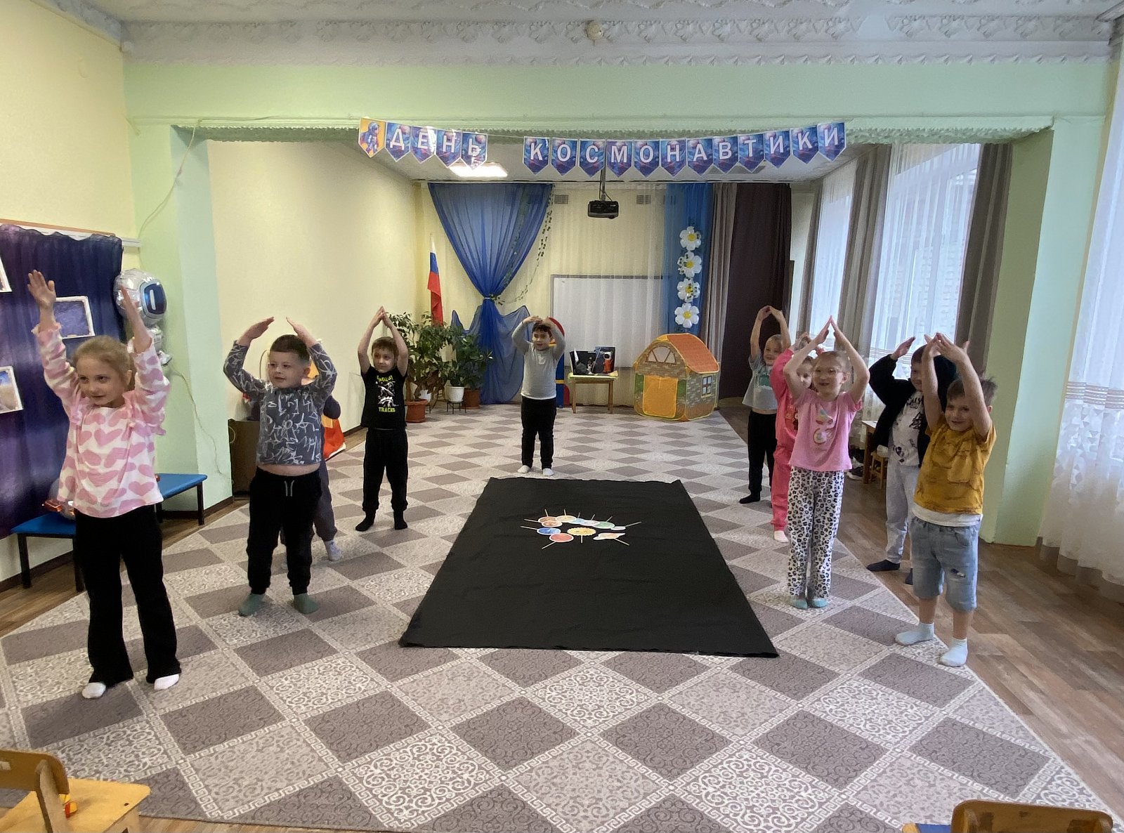 Сегодня ребята подготовительной группы «Зайчата» готовились с «полету» в космос. День начали с космической зарядки! А после пошли есть звездный завтрак.