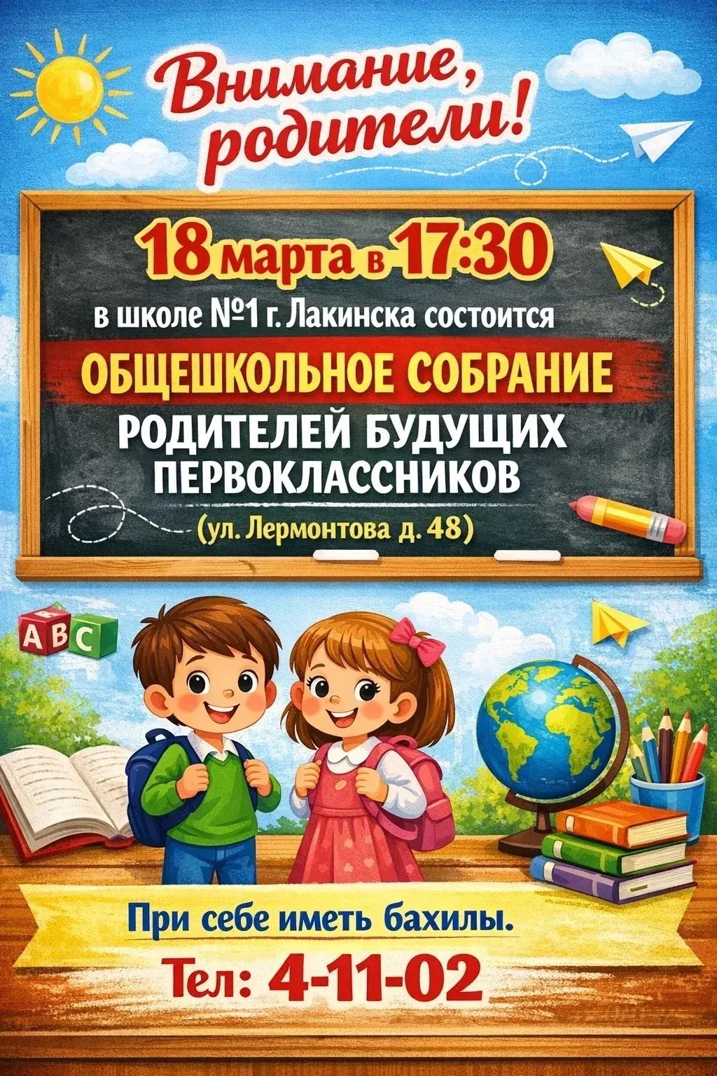 Информация для родителей, чьи дети пойдут в МБОУ СОШ №1!